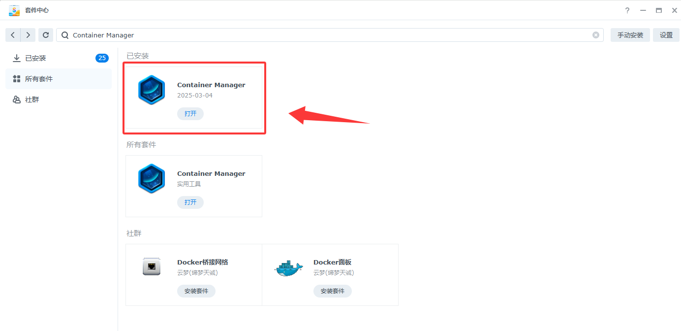 群晖套件中心安装:Container Manager、Web Station